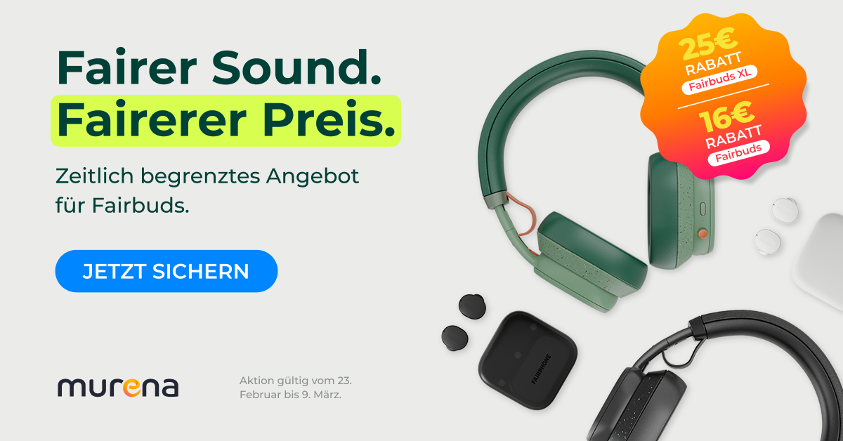 Sparen Sie jetzt 25 € bei Fairbuds XL und 16 € bei Fairbuds!