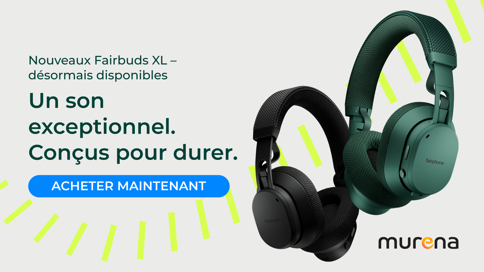 Voici les nouveaux Fairbuds XL de Fairphone, désormais disponibles en Europe sur murena.com.