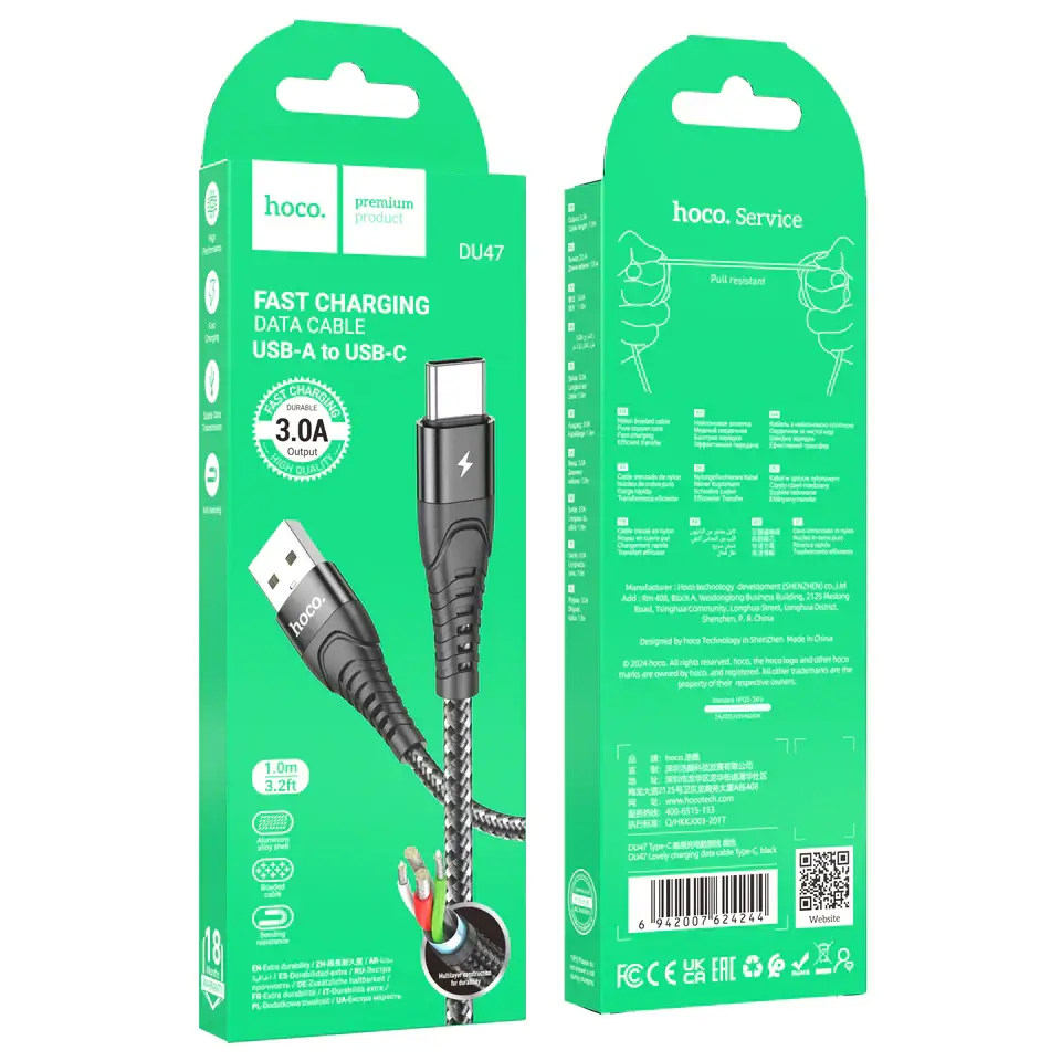 Charge faster and transfer data effortlessly with the Hoco DU47 USB-A to USB-C Cable. Strong, flexible, and designed for everyday use.